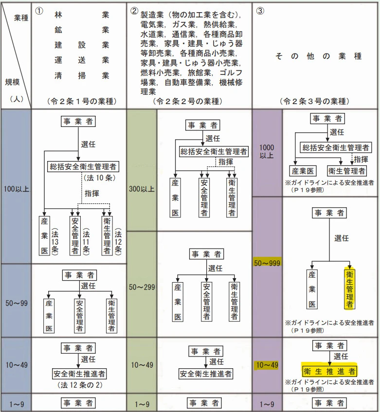 京都労働局・労働基準監督署 「事業場における 安全衛生管理体制のあらまし」